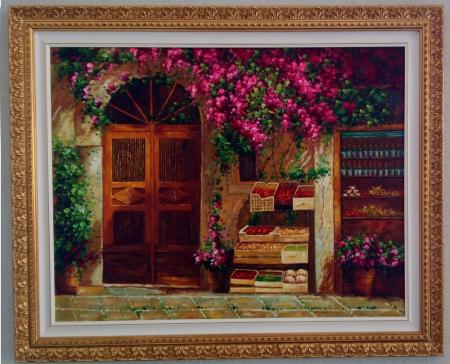 Dipito originale del pittore E.Ramas titolo "Scorcio di patio" pezzo unico